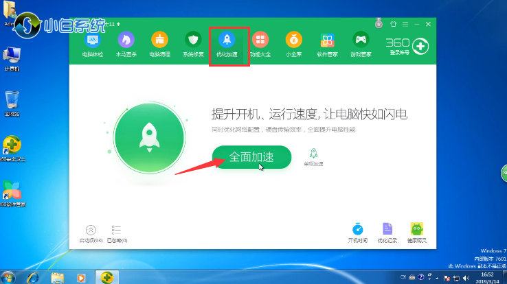 2.在頁面中點擊上方的”優化加速“選項,然后點擊”立即加速“。