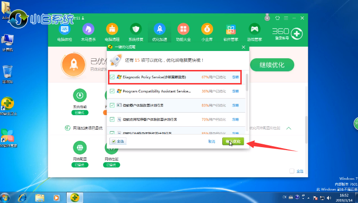 4.當優化完成后,我們將提示的需要優化的選項,點擊確認優化即可。(一般建議大家全選)