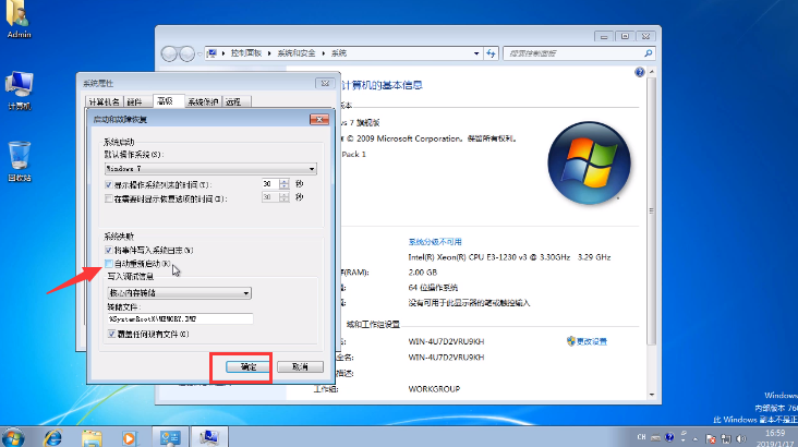 4.在頁面中將自動重新啟動選項的勾選去掉,然后點擊確定即可。