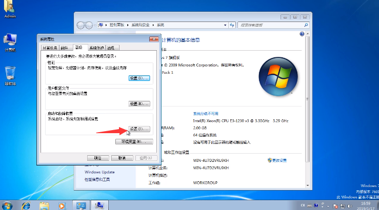 3.在高級系統設置頁面中找到下方的系統損壞和恢復,點擊“設置”。