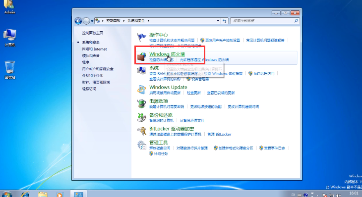 3.在系統和安全的頁面中,我們點擊windows防火墻。