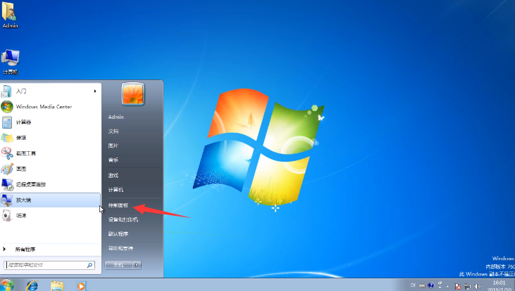 1.首先我們點擊開始菜單,選擇“控制面板”。