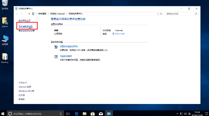2.進入頁面后,我們點擊左側的“更改適配器設置”。