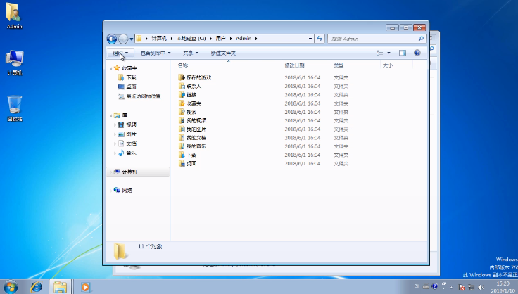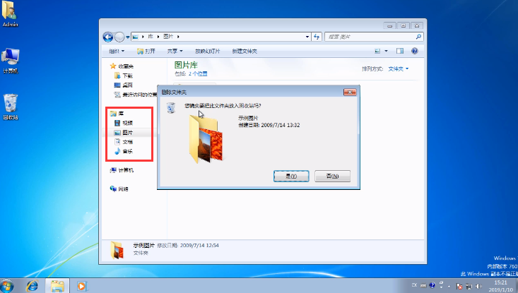 10.然后點擊庫下方的一些文件資料,里邊都是裝的默認音樂默認圖片默認視頻等,我們可以將其進行刪除。