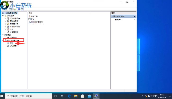 2.在計算機管理頁面當中,我們點擊左側的應用和服務功能,找到下方的“服務”按鈕。