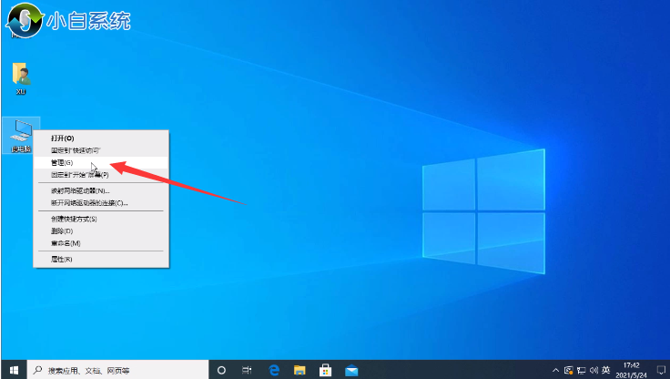 1.首先我們點擊桌面的的此電腦,右鍵打開“管理”選項。
