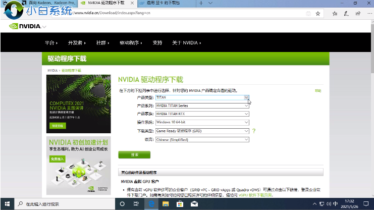 4.在英偉達的官網查找自己的顯卡型號下載相對于的顯卡驅動程序。