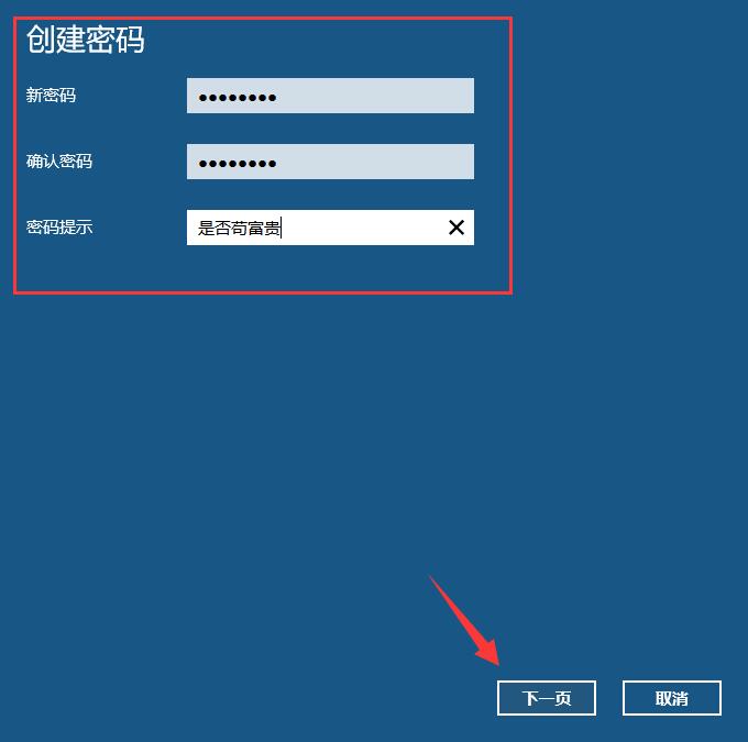 3、密碼正確進入如下界面。在這里輸入你想要設置的帳戶名,還有密碼。