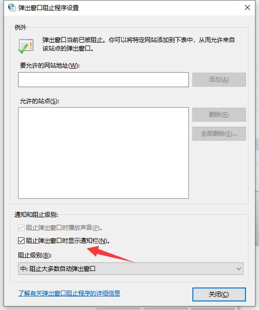 4、在頁面里勾選“阻止彈出窗口時顯示信息欄”,然后在組織級別下方點擊“阻止大多數自動彈出窗口”即可。