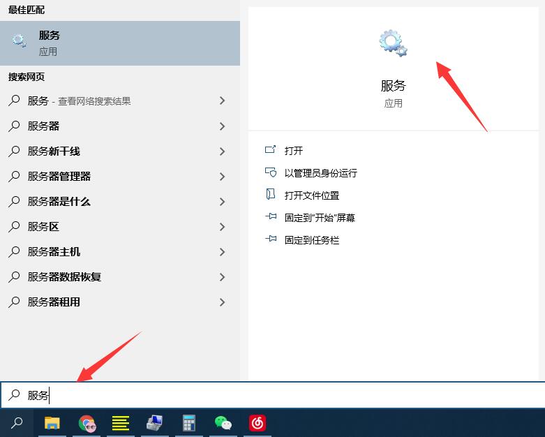 1、在任務的搜索框總,搜索服務,并選擇服務應用后打開;