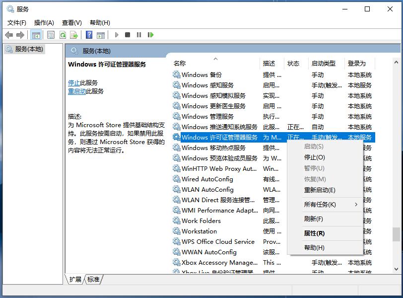 2、在windows服務中,找到‘windows許可證管理器服務’后,右鍵,點擊屬性;
