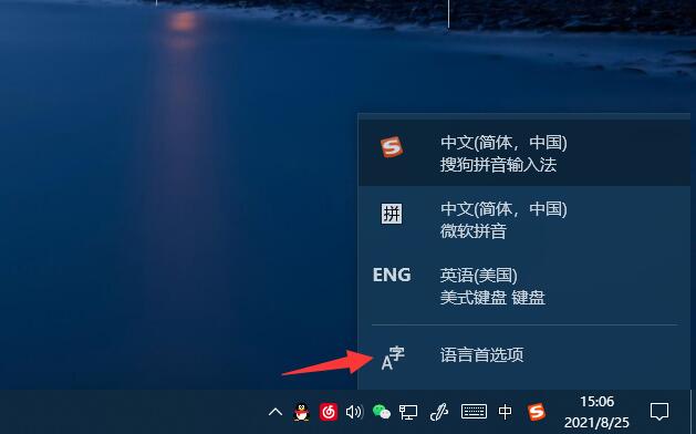 1、點擊任務欄的輸入法后,再點擊彈出來的語言首選項;