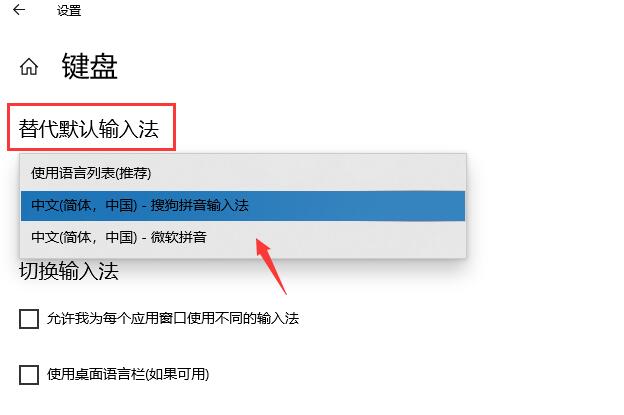 3、最后選擇其中一個已經安裝好的輸入法作為你的默認輸入法即可。