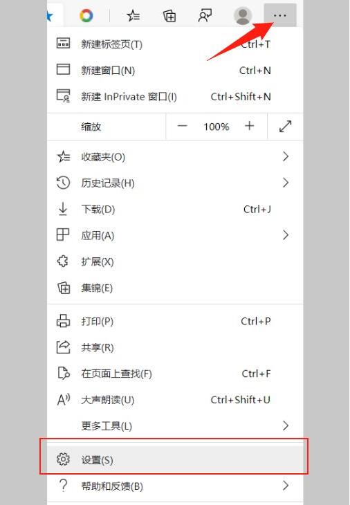 1、打開瀏覽器,點擊右上角配置按鈕->設置。