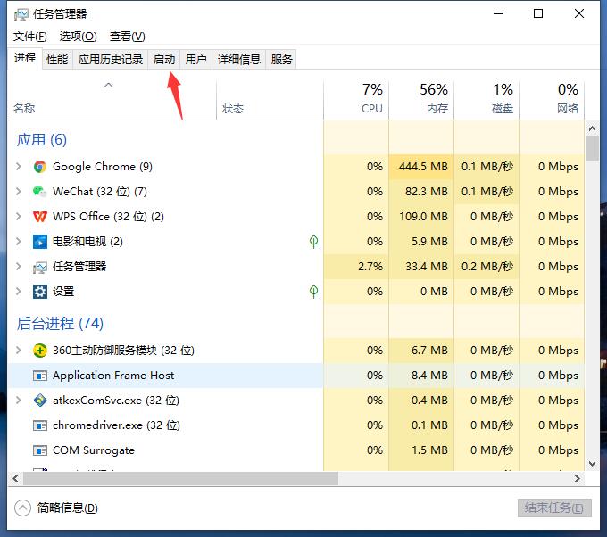 2、在任務管理器中,點擊啟動。