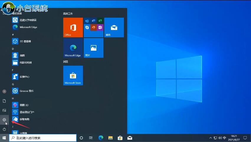 1、在開始菜單中,找到設置后點擊進入;