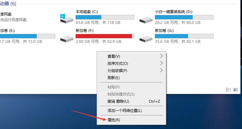 2、接著在磁盤周邊的空白處,點擊屬性,可以看到你的電腦是否已經激活。