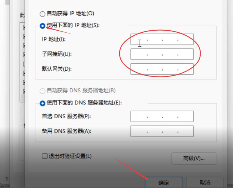 6、在設置中選擇“使用下面的ip地址”,輸入你想要的ip地址后,保存即可。