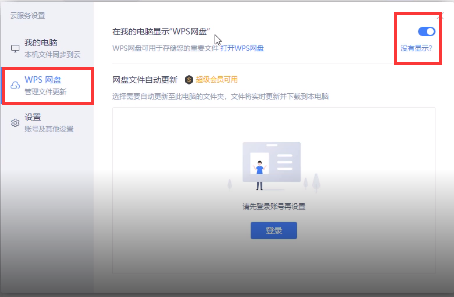 5.接著點擊我的電腦下方的”wps網盤“在右側把”在我的電腦顯示wps網盤“點擊關閉。