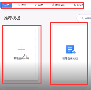 3.打開wps軟件后,我們可以看見有很多類型及推薦的模板供我們使用,特別的便利。