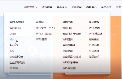1.首先我們進入官網,點擊所有產品我們可以看見wps所支持的系統。