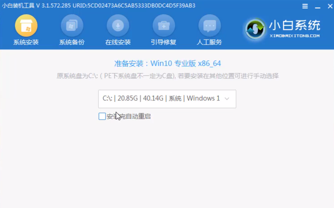 6、 接著我們將系統安裝到c盤點擊,開始安裝按鈕即可。