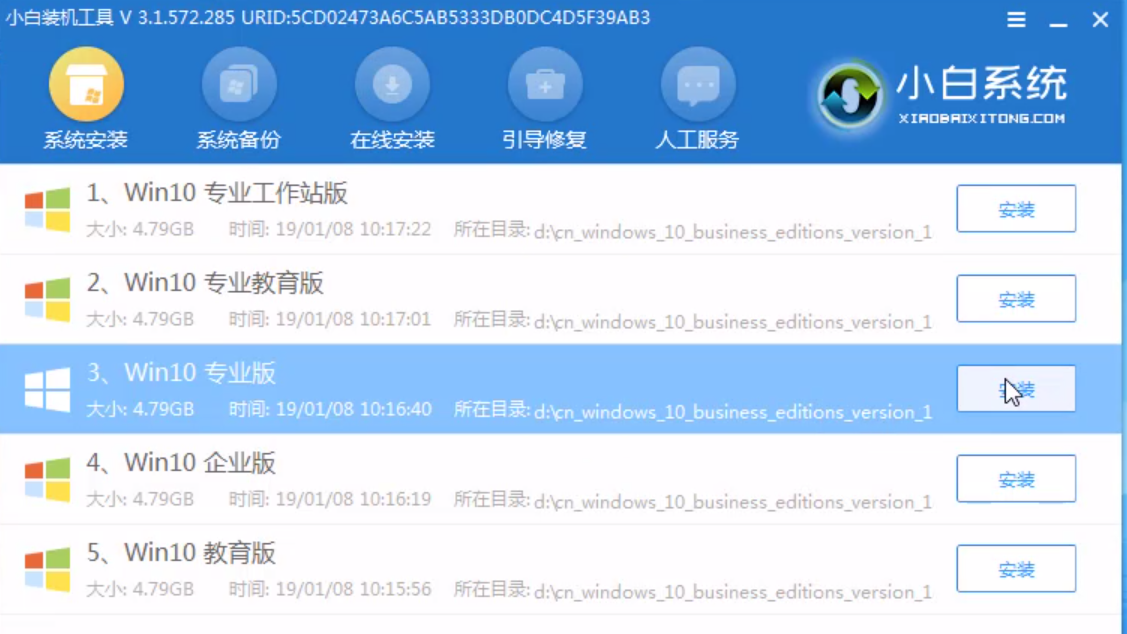 5、進入pe系統后,我們選擇win10系統后的安裝按鈕。