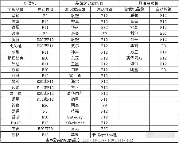 1、關閉需要重裝win10系統的電腦,插上U盤啟動盤,開機時按快捷啟動鍵,以下常見品牌電腦快捷鍵大全。