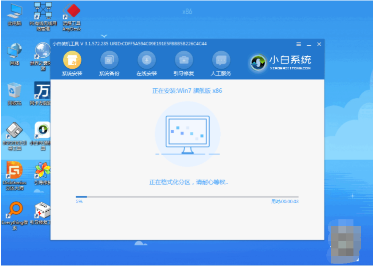 4、在 PE 系統中小白裝機工具就會幫助我們進行安裝系統,只需要根據提示操作即可。