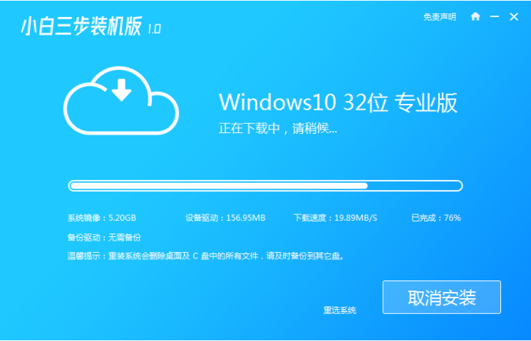 2、接下來軟件直接就下載系統,下載完成后會自動幫助我們部署當前下載的系統。