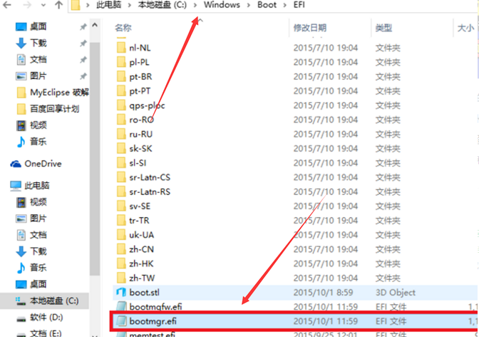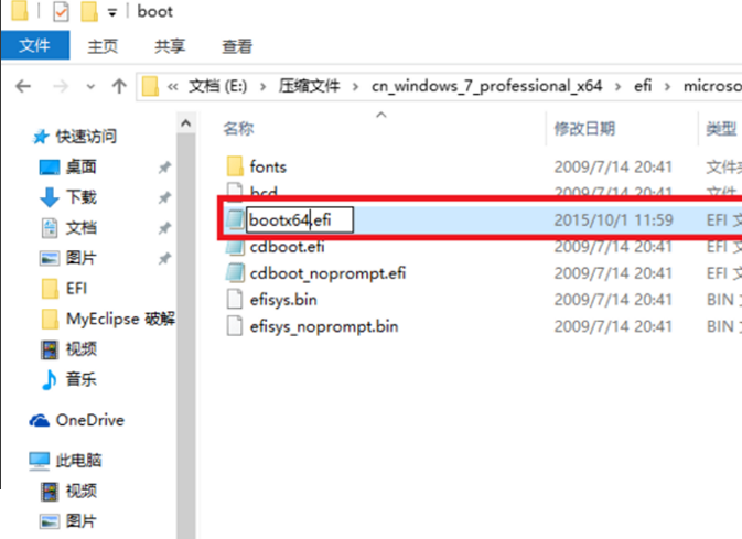 3、沒有的話將第三步中的bootmgr.efi復制到此目錄下,然后將名字改為bootx64.efi,這是前序步驟。