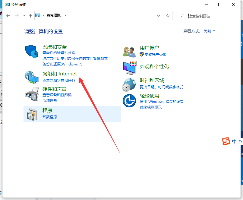 2、在打開的控制面板窗口,選擇“網絡和Internet項”圖標。