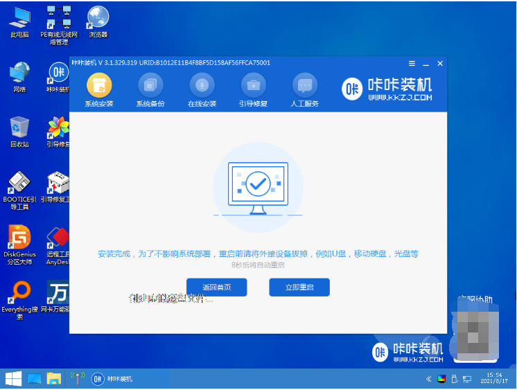 5.接著進入到桌面我們打開咔咔裝機一鍵重裝系統,開始安裝系統鏡像。