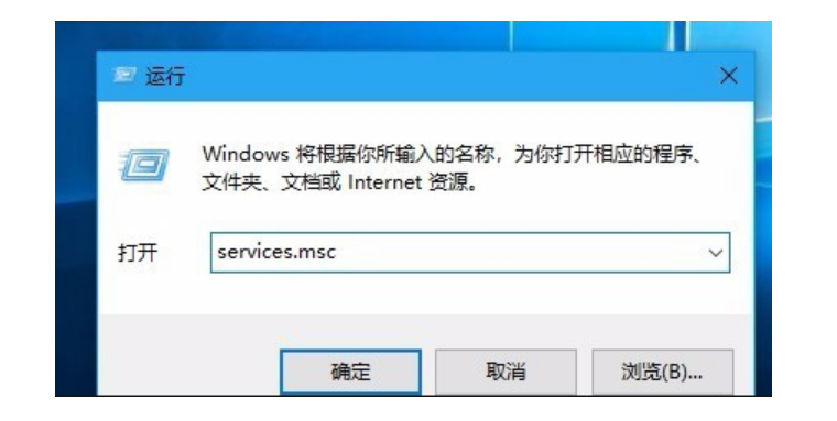 3、接著在打開的Windows10運行窗口中,輸入命令“services.msc”,然后點擊確定按鈕運行該程序。