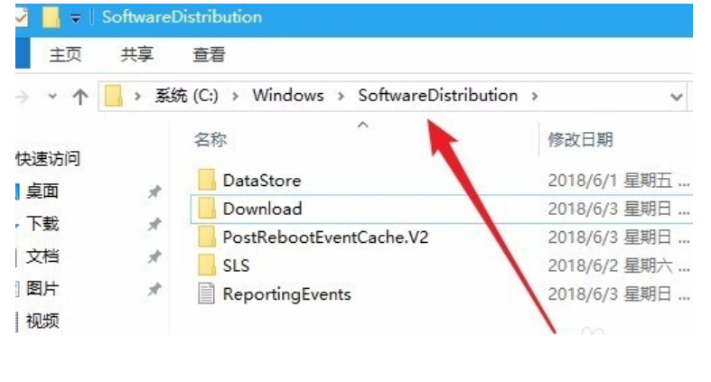 5、接下來打開Windows資源管理器,然后定位到:C:\Windows\SoftwareDistribution文件夾。