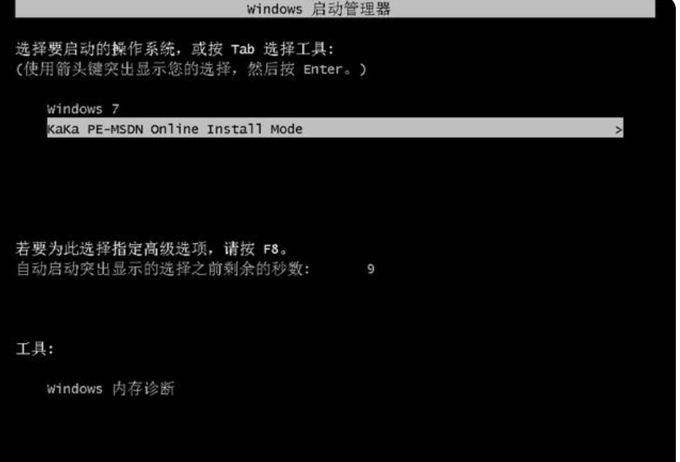 4、在這個界面選擇kaka pe-msdn項進入pe系統內。
