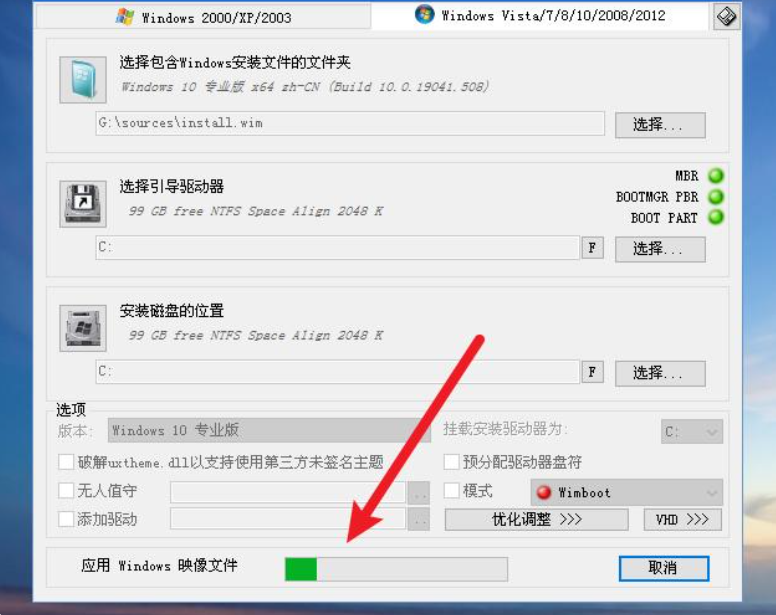 11、引導驅動盤和系統安裝盤要選擇正確,因為不一定盤符可不一定都是C這個字母,版本的選擇根據自己的喜好,然后點擊右下角“開始安裝”: