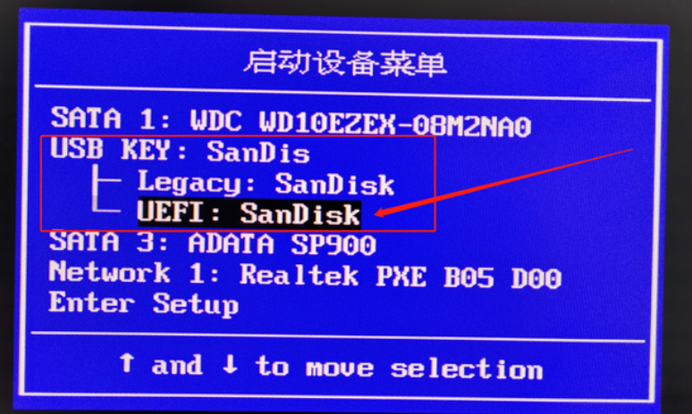 7、制作好了啟動U盤,接下來就可以安裝系統了。將制作好的啟動U盤插入電腦,開機并狂按F12(部分主板不一定是F12,也可能是F11或者其它鍵),在啟動菜單里選擇自己的U盤并回車。