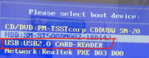 4.U盤插入重裝系統的電腦上,按下電源鍵,然后立即不停地敲擊啟動熱鍵,出現的界面中選擇USB選項即可。啟動熱鍵一般是f12,f2,del那些。