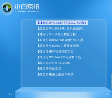 5.出現小白系統選擇界面,選擇【01】PE進入。