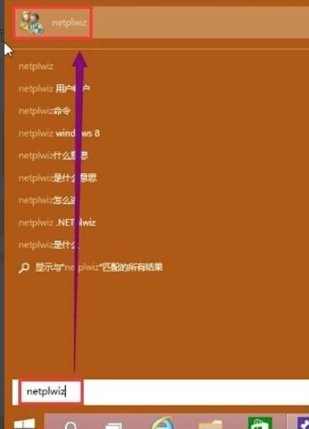 1.臺式機筆記本win10取消開機密碼,首先,在開始的搜索欄里輸入,【netplwiz】命令回車確認。