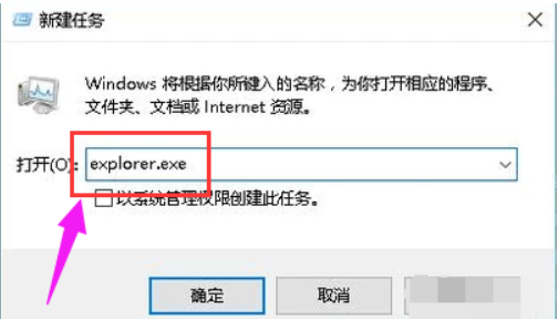 3、輸入【explorer.exe】回車即可解決問題;
