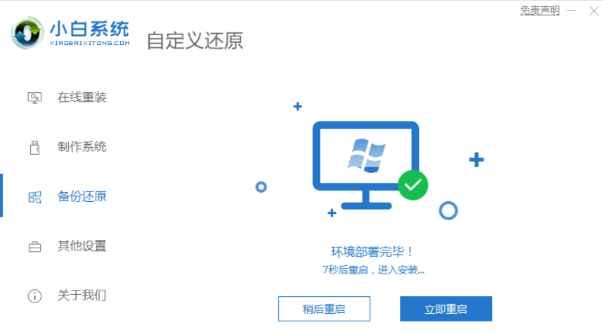 4、軟件會自動部署還原,當提示部署完成后,單擊立即重啟。