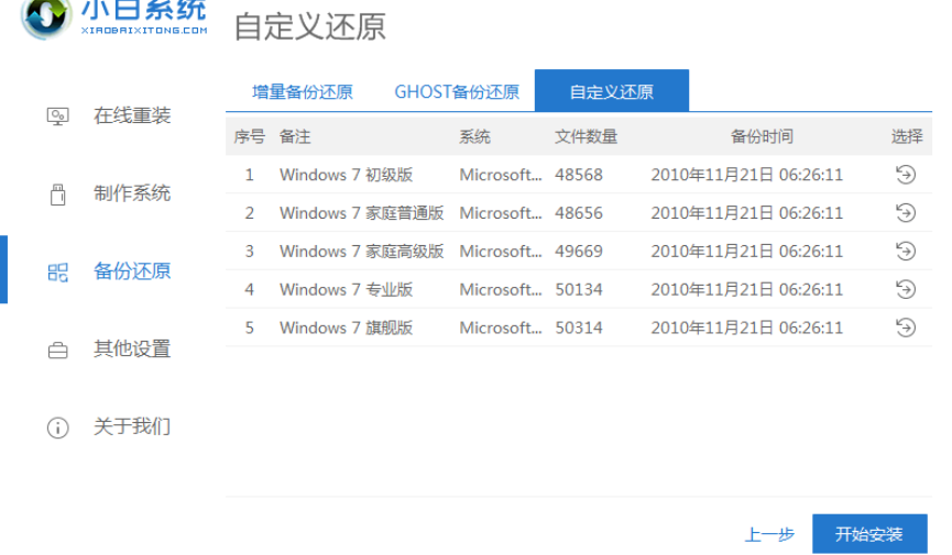 2、選擇“自定義還原”,選擇需要安裝的win10家庭版系統鏡像,點擊下一步。