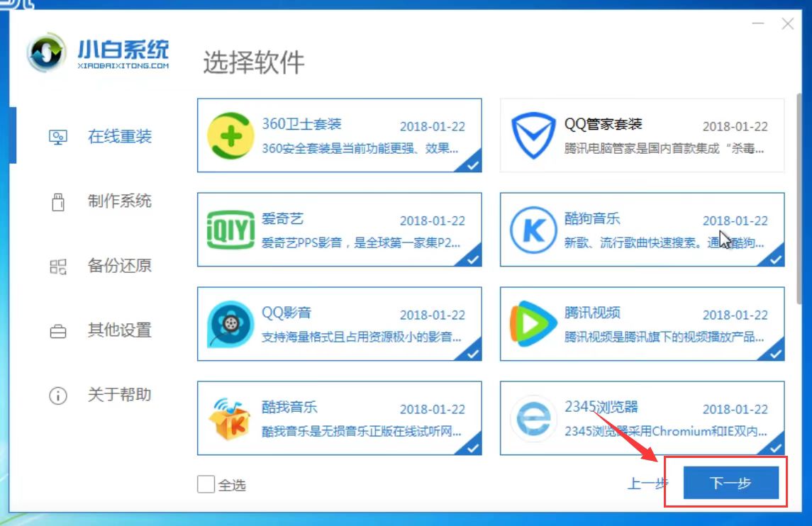 4、接著出現選擇軟件的界面,這對自己需求勾選安裝的軟件,然后點下一步。