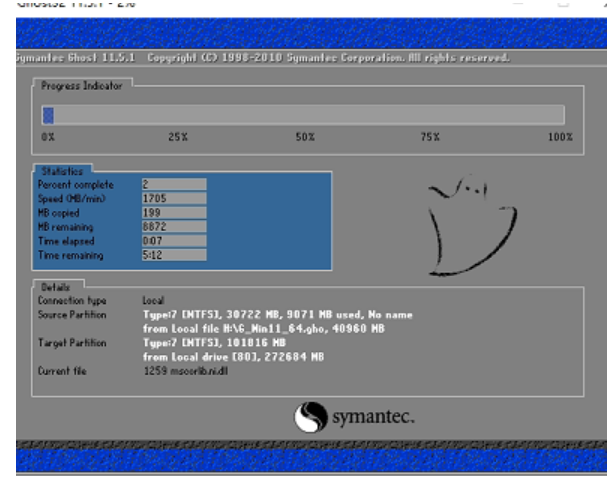8、系統備份完成后,將會再次重啟,自動進入系統安裝界面,這時等待系統安裝完成就大功告成了!