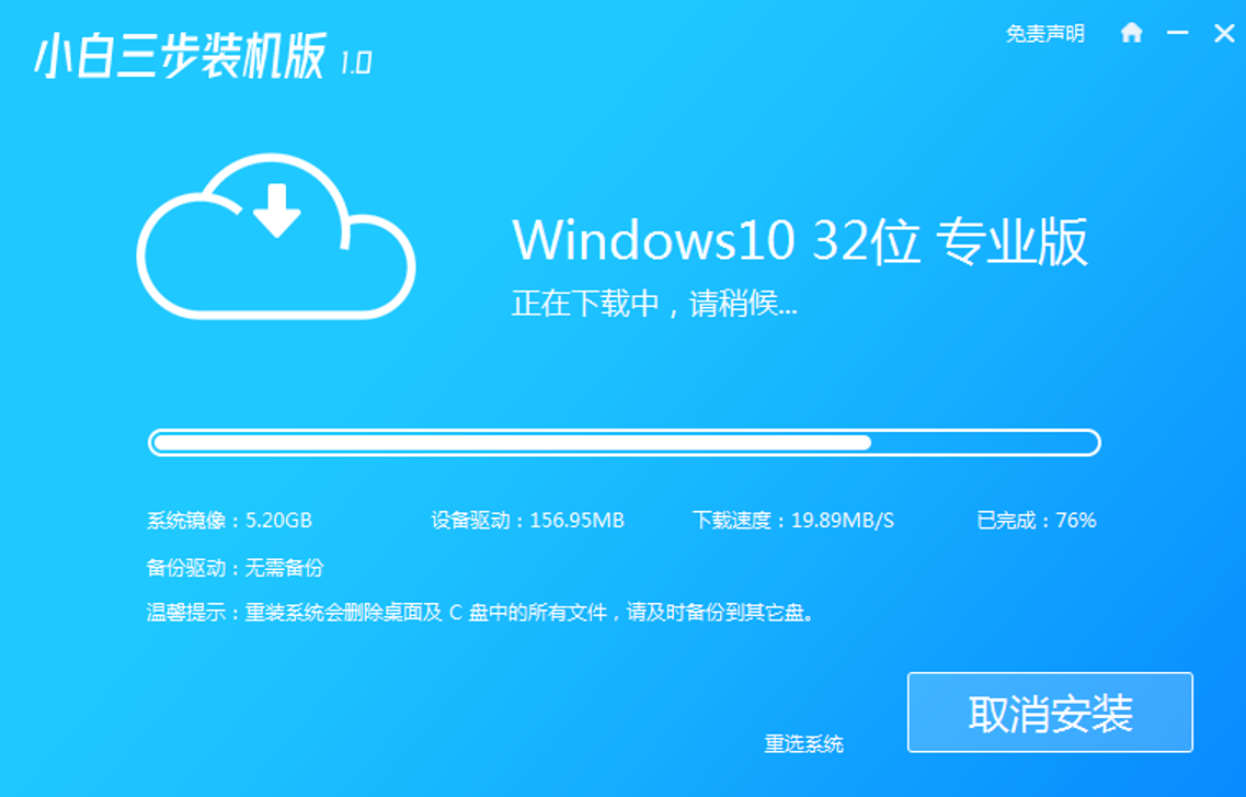 軟件版本:小白三步裝機版1.0