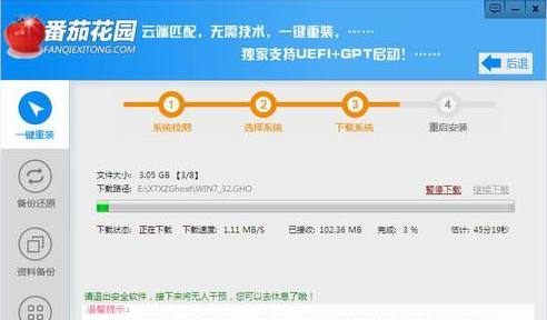 3、開始下載系統。完成后,電腦將會自動重啟電腦;