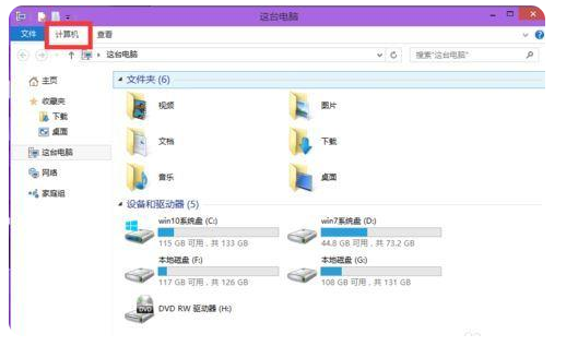 1、打開我的電腦,選擇上方中的計算機選項卡