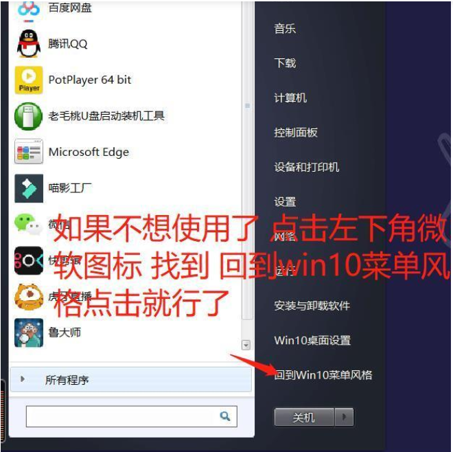 6、如果想換回win10系統,點擊電腦開始界面右下角位置就可以切換回來了。